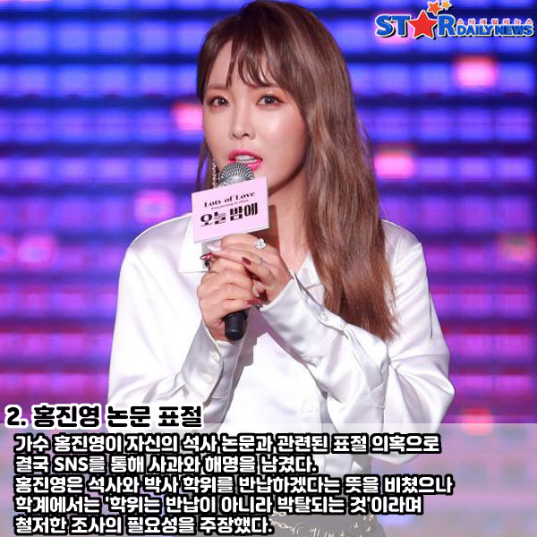 가수 홍진영이 자신의 석사 논문과 관련된 표절 의혹으로 결국 SNS를 통해 사과와 해명을 남겼다.